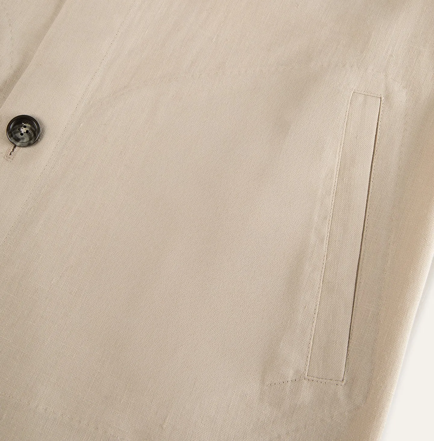 Crafted from pure linen, it stands out for its cool, dry hand feel and naturally textured surface. Linen ensures breathability and comfort while maintaining a refined yet effortless appearance, ideal for a relaxed and contemporary elegance.