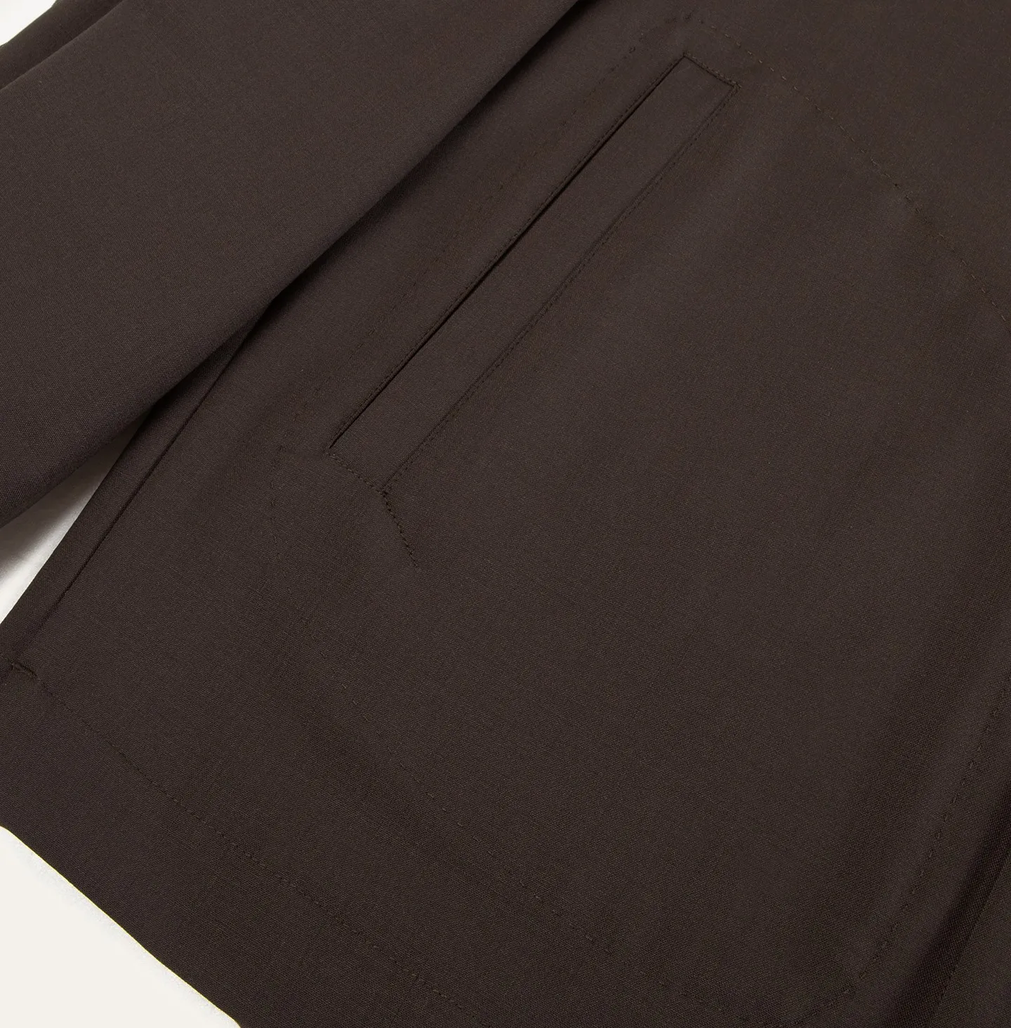 Made from a fine wool fabric, selected for its soft hand and naturally breathable feel. The texture is compact yet lightweight, offering a polished look with a fluid drape. A perfect choice for transitional weather, combining elegance, practicality and everyday comfort.