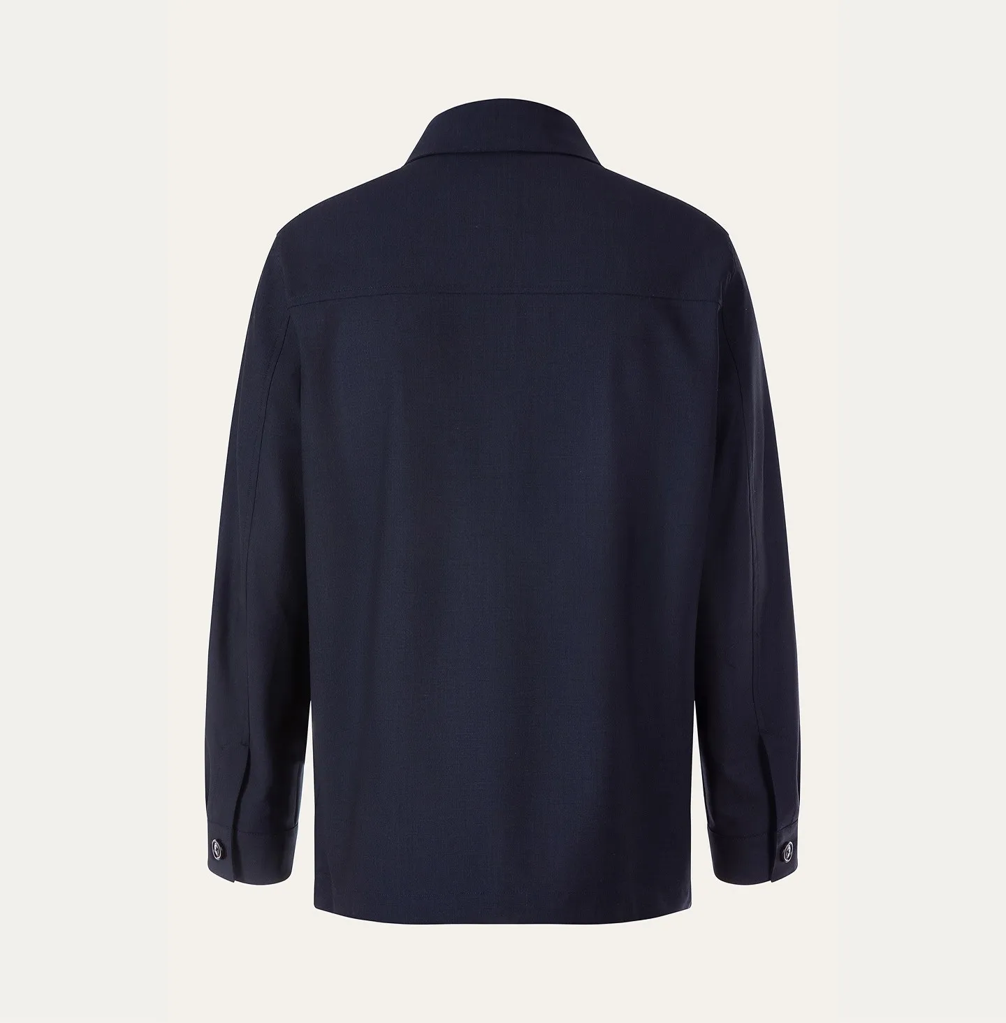 Unlined overshirt-style jacket, defined by a clean and versatile silhouette that blends the ease of a shirt with the structure of outerwear. The design features a classic collar, a front button fastening and two patch chest pockets with flaps, for a refined utilitarian touch. Discreet side pockets are integrated into the construction, while the straight hem and regular fit ensure comfort and effortless layering throughout the season.