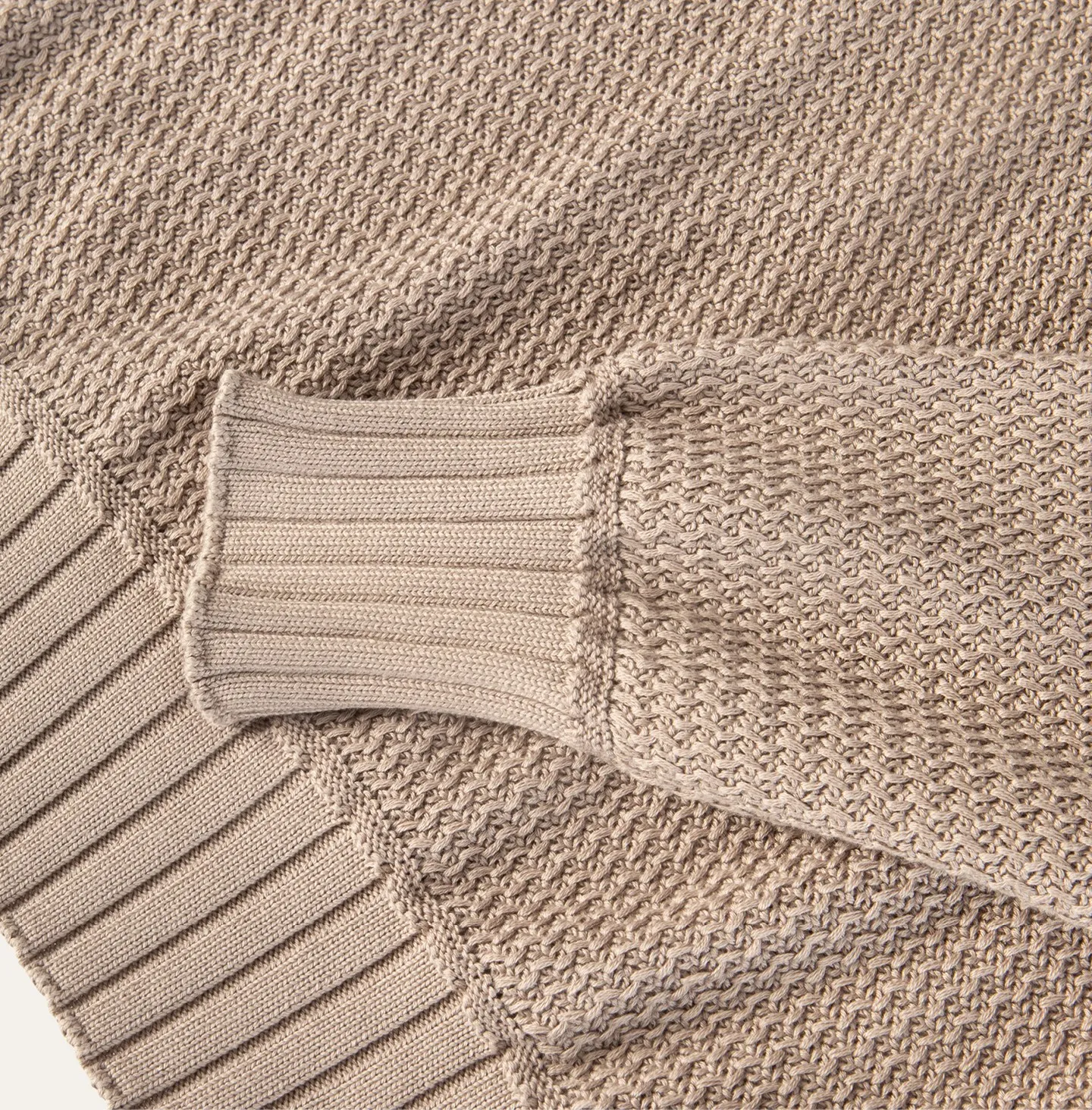 Crafted from pure cotton, this piece stands out for its textured surface created through a cable knit construction, giving the fabric a rich and dimensional appearance while maintaining lightness and breathability. The cotton yarn ensures a soft hand feel and everyday comfort, while the knit structure enhances the garment’s shape and refined character. The result is a versatile piece ideal for the spring and summer season, combining relaxed elegance with high-quality materials.