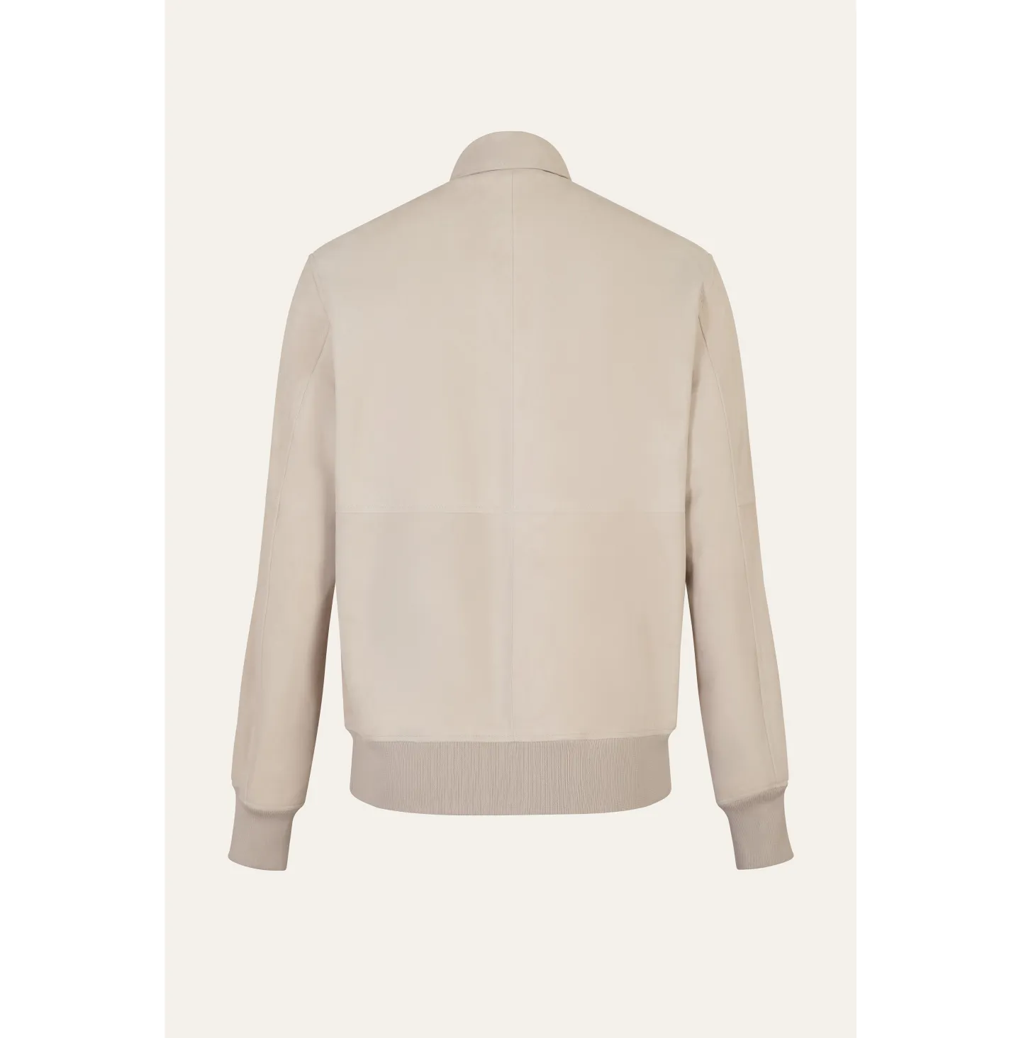 Crafted from soft suede, this bomber showcases artisanal quality and the lightness of premium leather. The velvety texture and smooth hand provide both depth of color and comfort, maintaining a refined yet effortless appearance perfect for transitioning gracefully through the season.