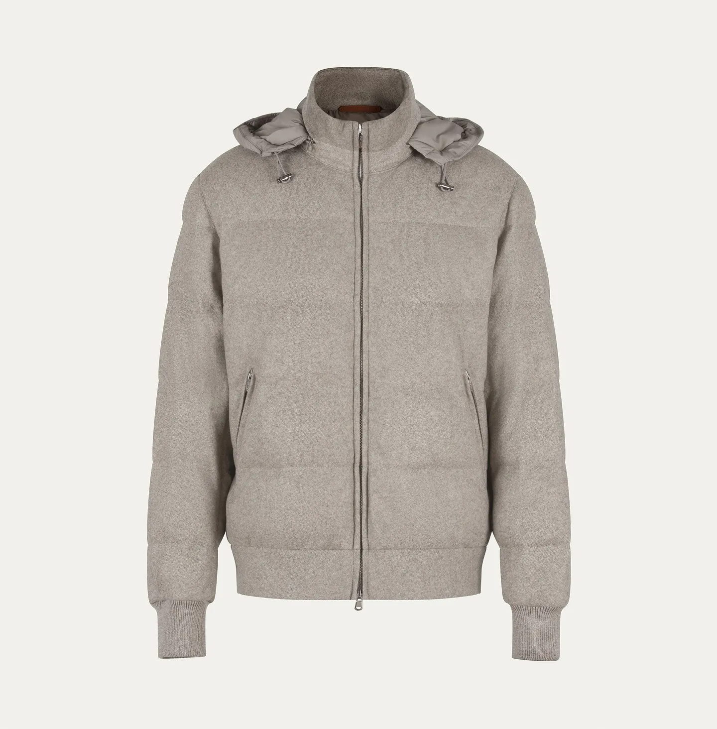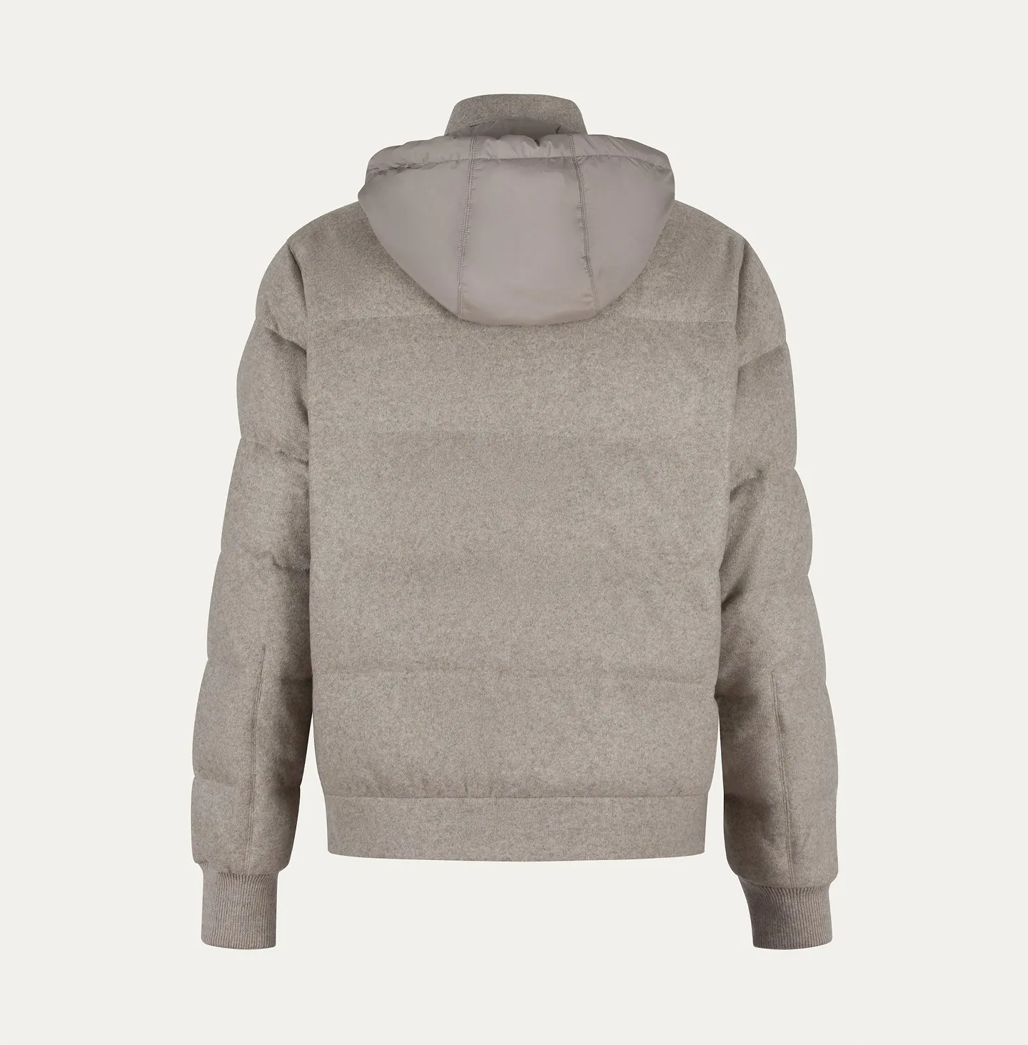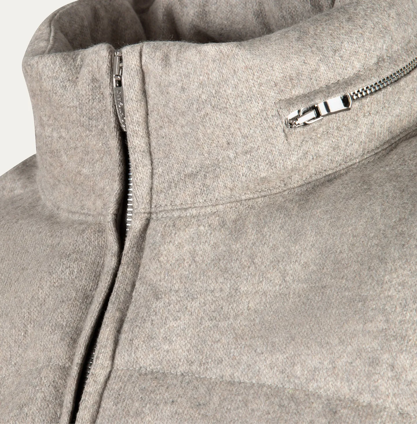 Crafted from cashmere jersey, this jacket blends softness and warmth with the resilience of a structure designed for everyday movement. The interior filling in high fill power goose down guarantees outstanding thermal insulation while maintaining lightness and a streamlined volume. A combination of noble and high-performance materials that delivers absolute comfort and timeless style.