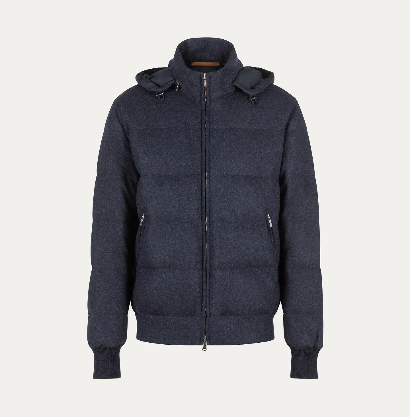 Crafted from cashmere jersey, this jacket blends softness and warmth with the resilience of a structure designed for everyday movement. The interior filling in high fill power goose down guarantees outstanding thermal insulation while maintaining lightness and a streamlined volume. A combination of noble and high-performance materials that delivers absolute comfort and timeless style.