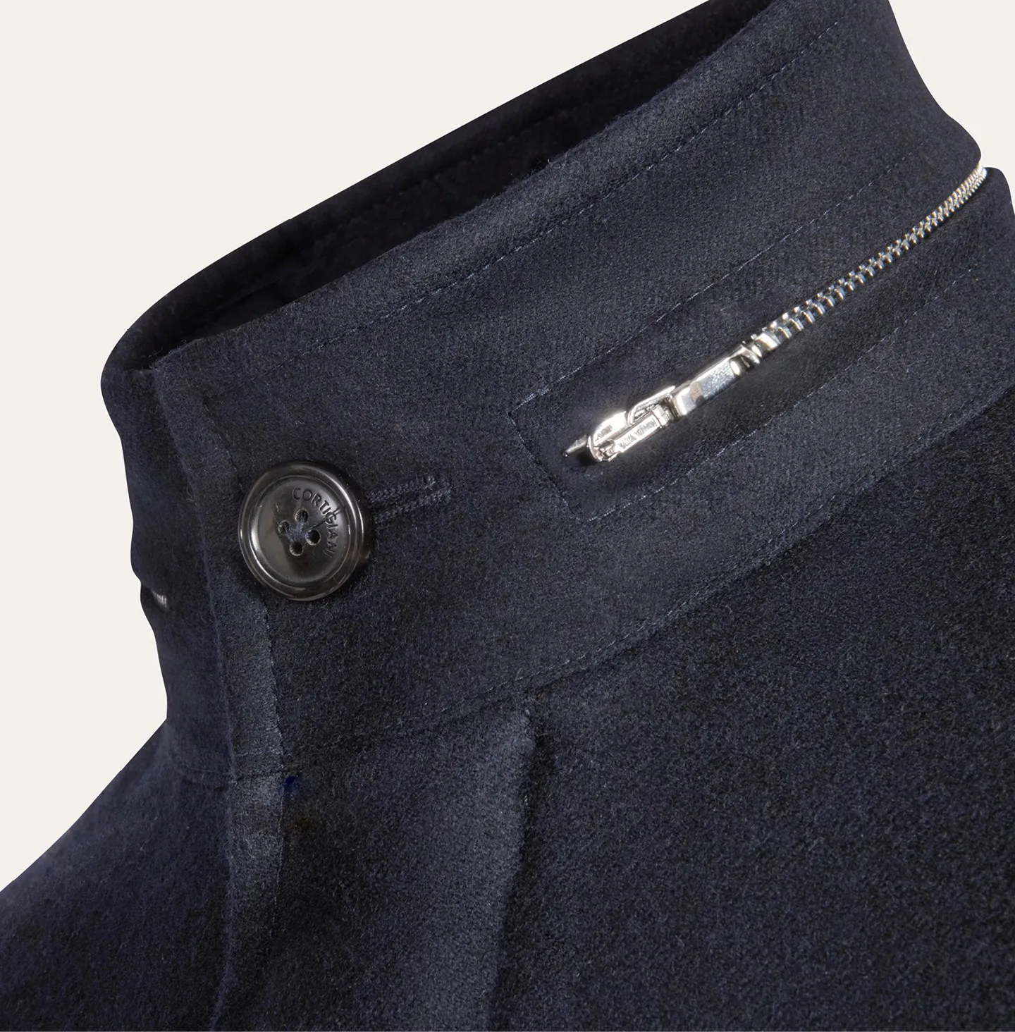 Crafted from a fine blend of cashmere and comfort wool, this fabric combines the natural softness and refinement of cashmere with the elasticity and practicality of wool with stretch properties. The result is a material that ensures comfort, resistance, and ease of movement, making the garment suitable for everyday wear while maintaining a sophisticated look.