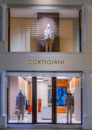 Cortigiani boutiques welcome visitors into refined spaces where attention to detail and the quality of materials embody authentic Italian style. Each boutique is designed to offer an exclusive, discreet, and timeless shopping experience.