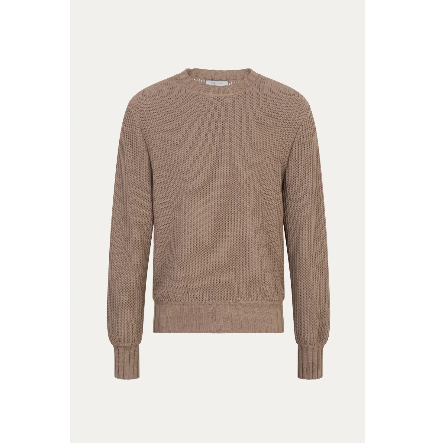 Made from pure cotton, this sweater combines comfort and breathability with a soft, substantial hand. The 7-gauge English rib knitting enhances the three-dimensional texture of the yarn, giving the garment depth and character. Perfect for transitional seasons, it strikes a harmonious balance between style and functionality.