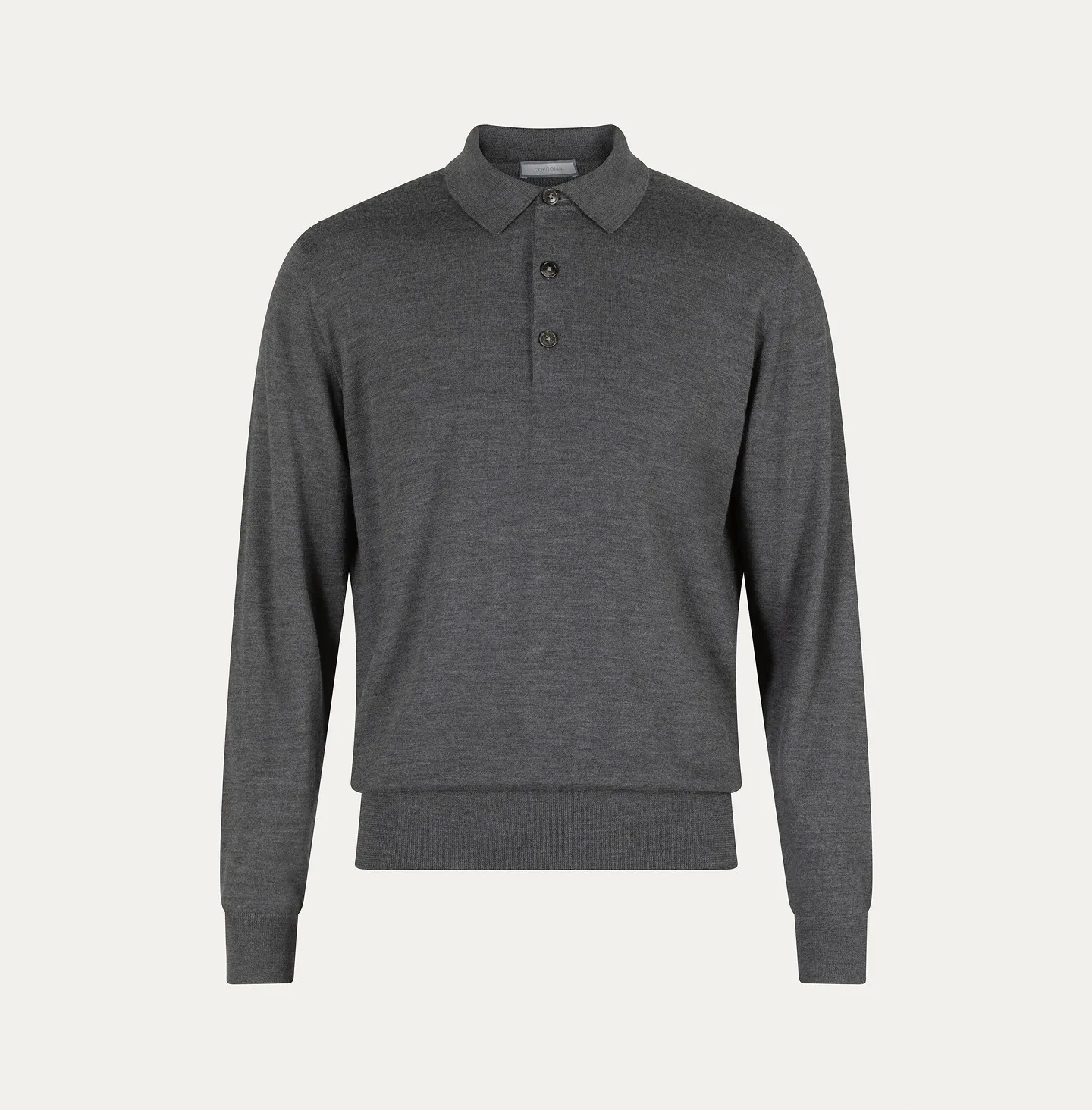 This lightweight polo sweater embodies a relaxed yet refined elegance, ideal for everyday wear with a touch of sophistication. The three-button closure at the front recalls the classic polo style, reinterpreted in a sleek and contemporary way thanks to its clean lines and regular fit. A ribbed insert beneath the collar adds a sartorial detail that enriches the construction of the piece. Ribbed cuffs and hem further define the structure, providing balance and understated refinement. Designed to be worn on its own or layered under a jacket, it always conveys a discreet, versatile, and elegant character.
