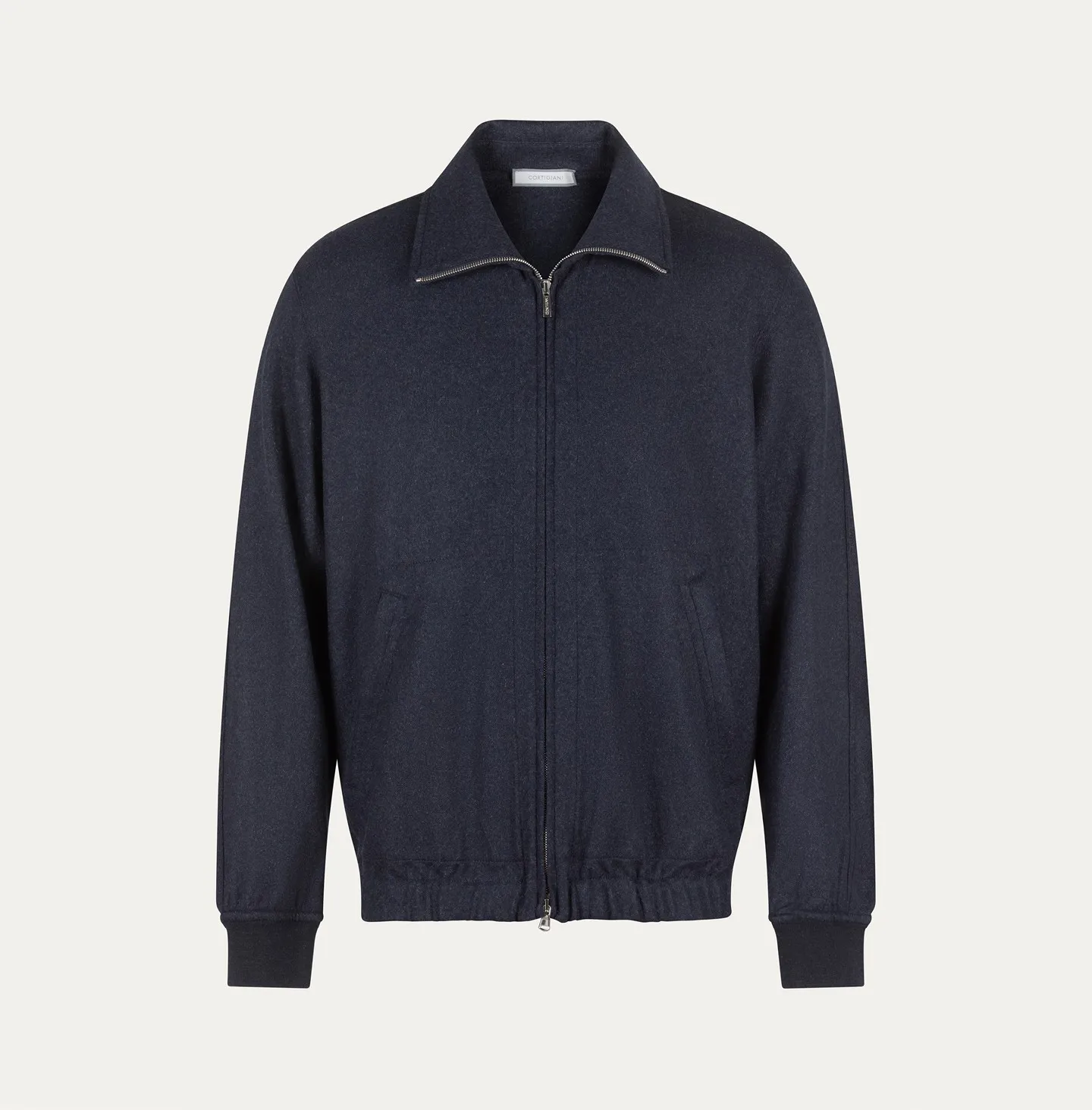 This cashmere jersey topwear combines everyday comfort with refined elegance. The regular fit and the front double-slider zip, concealed by a clean and minimal construction, emphasize its essential character. The side pockets, equipped with hidden zips and finished internally with leather inserts, reveal a precious detail that blends functionality with sophistication. Ribbed cuffs and hem complete the design, adding practicality and balance to the proportions.
