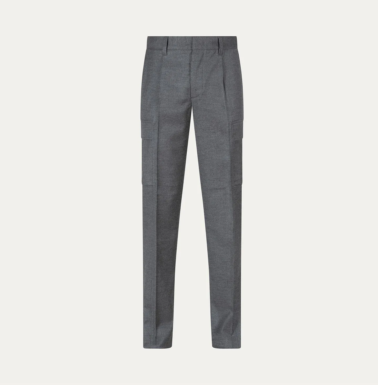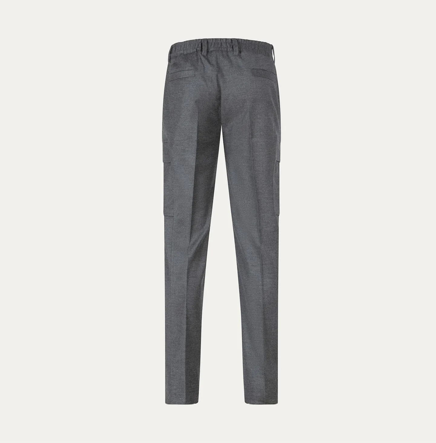 The Leisure Fit cargo trousers in cashmere comfort wool combine functionality with refined elegance. The relaxed line, with a regular fit and contemporary cut, is enhanced by side cargo pockets that add a dynamic and versatile character. Sartorial details such as the pressed central crease, the welt back pockets with button, and the elasticated waistband at the back highlight the practical spirit of the model without compromising on sophistication. Perfect for leisure time, they reinterpret utility-inspired style in a refined way, adapting effortlessly to relaxed yet polished looks.