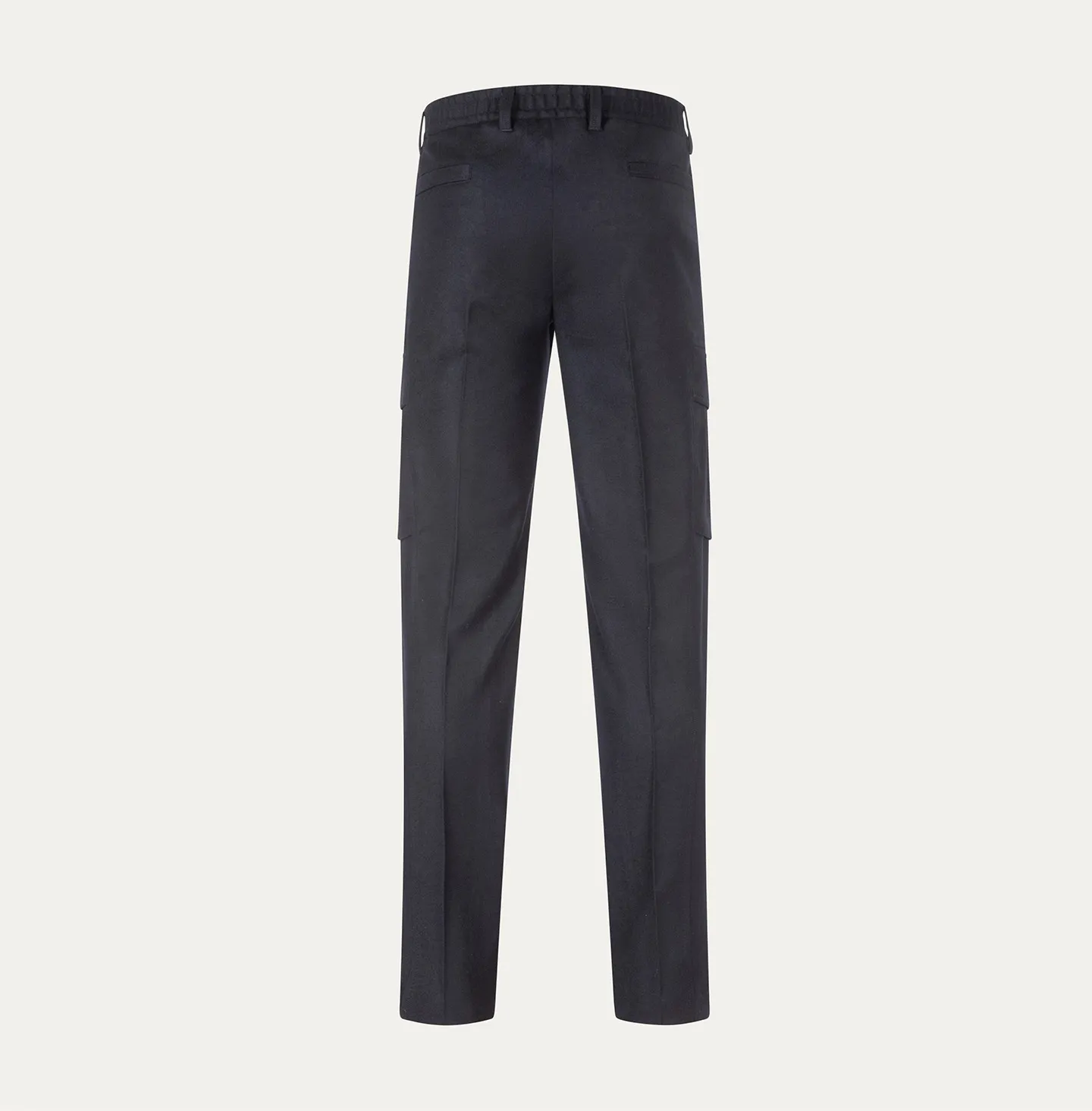 The Leisure Fit cargo trousers in cashmere comfort wool combine functionality with refined elegance. The relaxed line, with a regular fit and contemporary cut, is enhanced by side cargo pockets that add a dynamic and versatile character. Sartorial details such as the pressed central crease, the welt back pockets with button, and the elasticated waistband at the back highlight the practical spirit of the model without compromising on sophistication. Perfect for leisure time, they reinterpret utility-inspired style in a refined way, adapting effortlessly to relaxed yet polished looks.