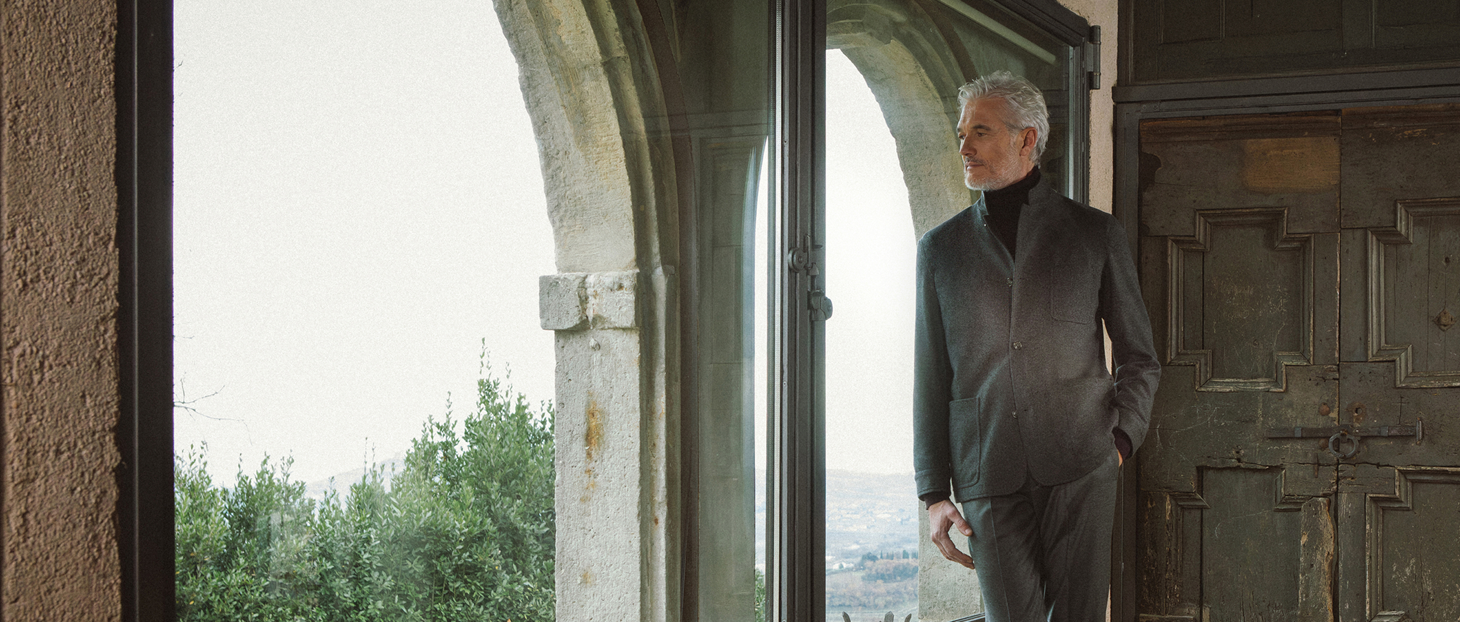 L’essenza dell’uomo moderno: sobria, consapevole, raffinata. Ogni capo nasce da un gesto preciso, da una materia che parla. Un linguaggio silenzioso fatto di equilibrio e autenticità.