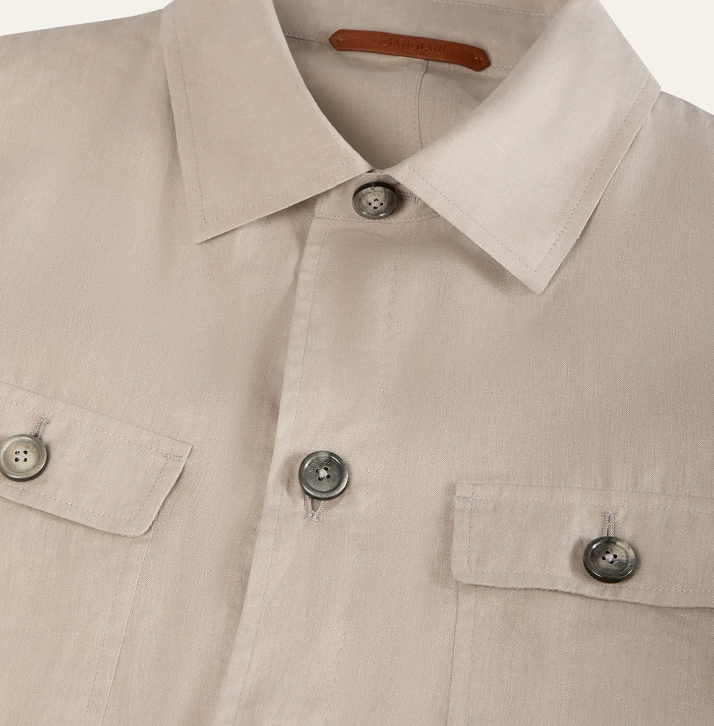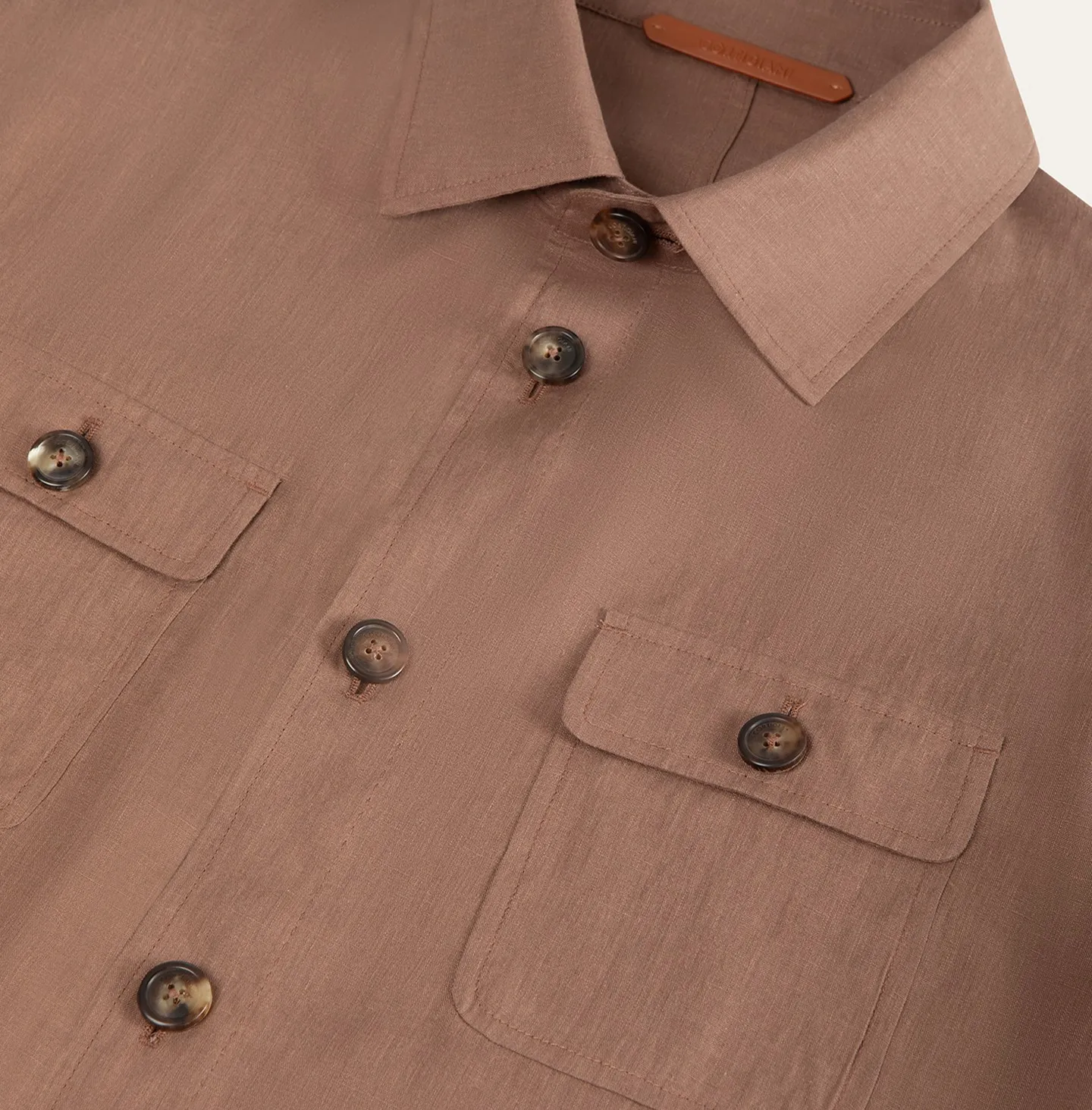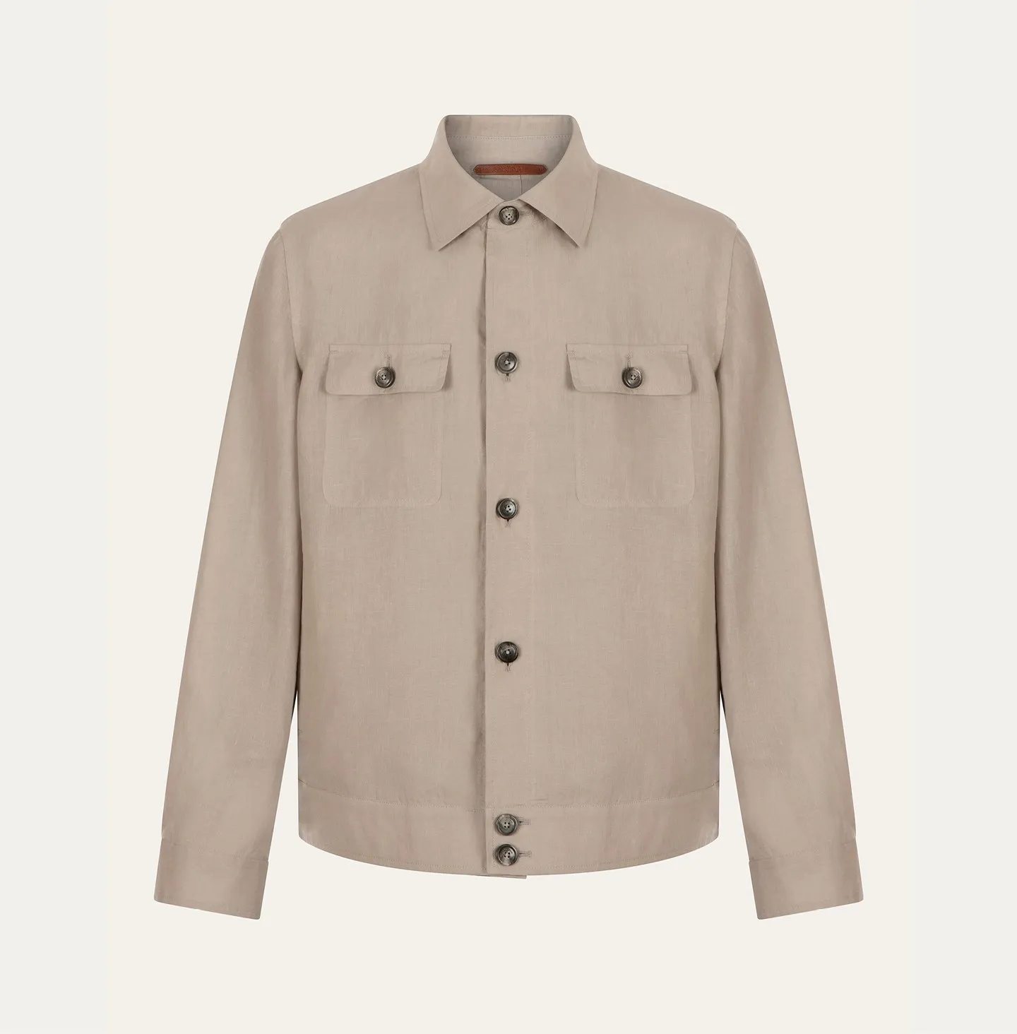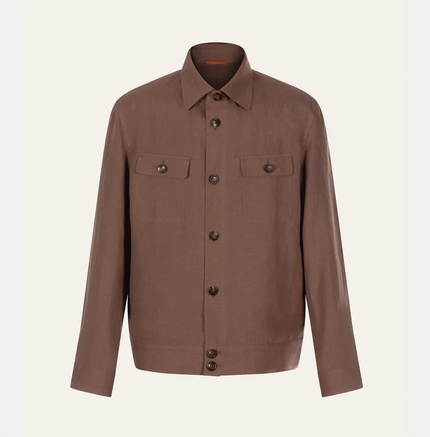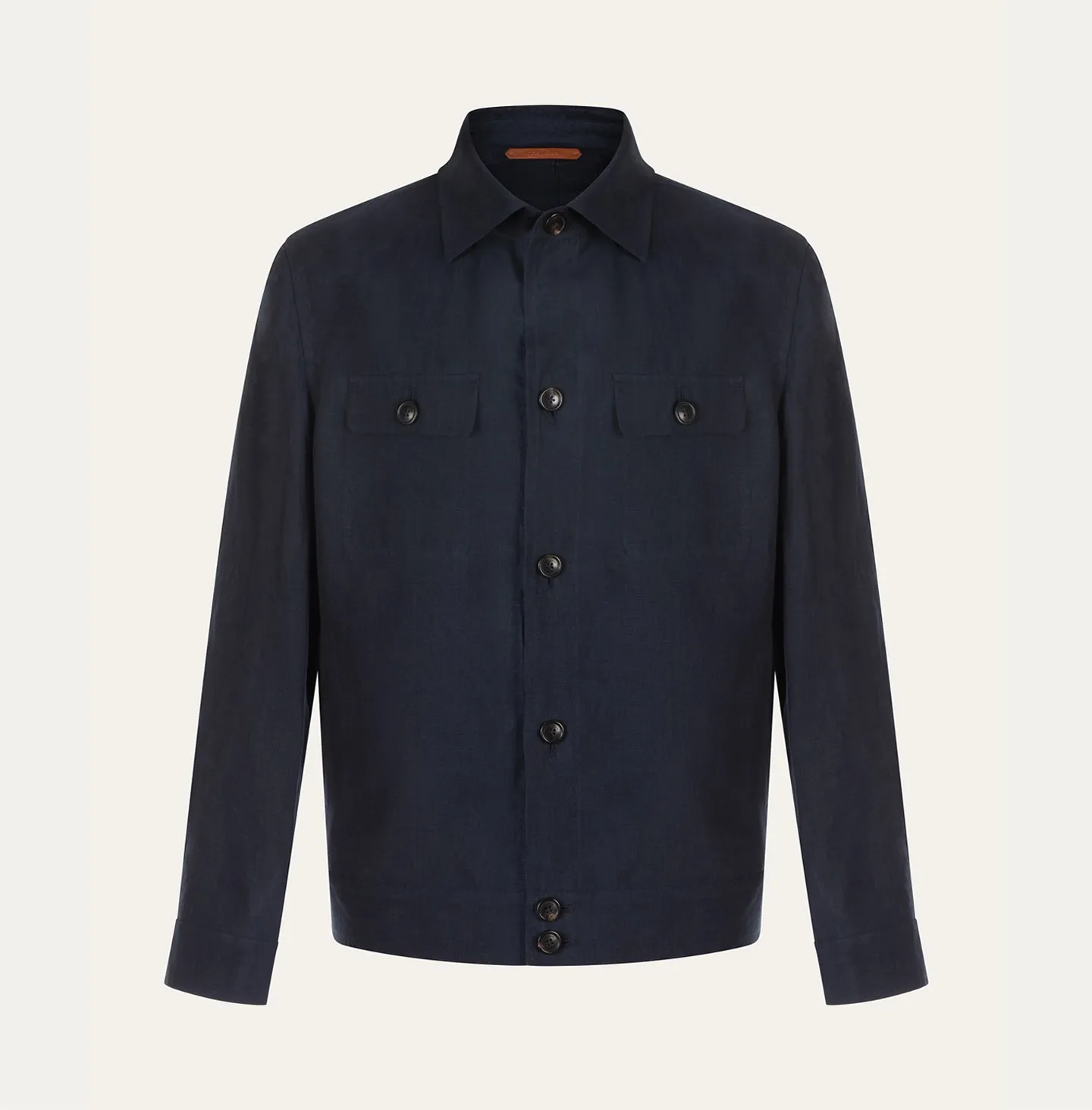 Giubbino sfoderato in lino leggero dal gusto essenziale e raffinato, pensato per la stagione calda e per un’eleganza rilassata ma sempre curata. Il design richiama la classica giacca stile camicia, con chiusura frontale a bottoni, colletto classico e due tasche applicate sul petto con pattina. La linea è pulita e versatile, completata da polsini regolabili e finiture precise che valorizzano la semplicità del capo.