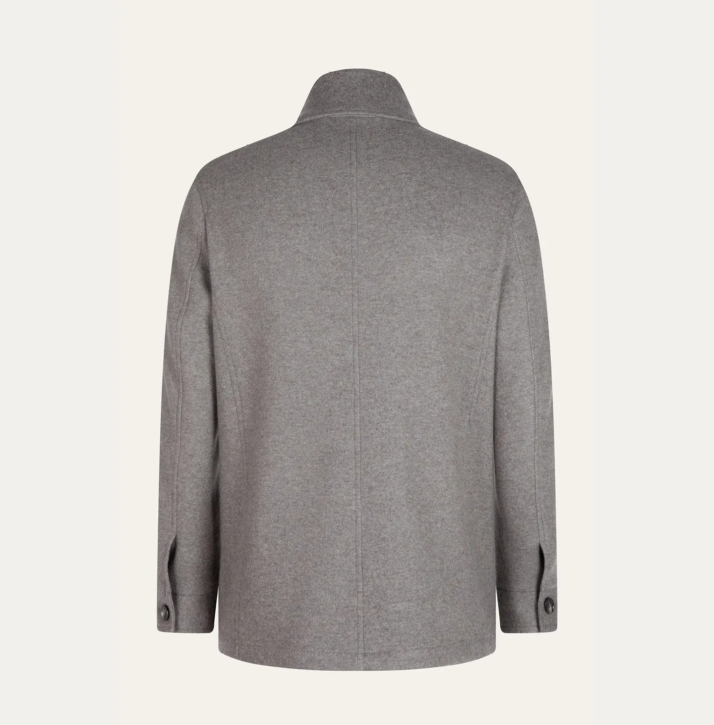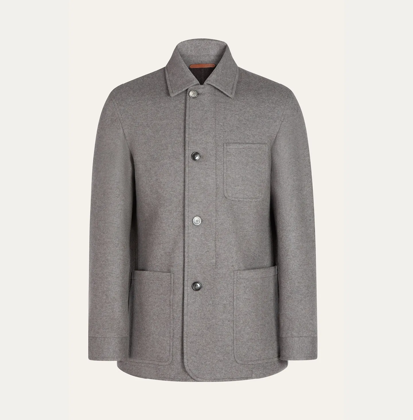 Outerwear stile giacca con chiusura a quattro bottoni che nasconde una zip interna, pensato per unire eleganza e funzionalità. Il design si distingue per il collo a camicia, sobrio e raffinato, che aggiunge versatilità all’insieme. Sul fronte sono presenti due tasche applicate inferiori e una tasca al petto, mentre i polsini con bottone completano la costruzione sartoriale del modello. La linea è pulita e regolare, con un retro essenziale che valorizza la leggerezza e il comfort della struttura.