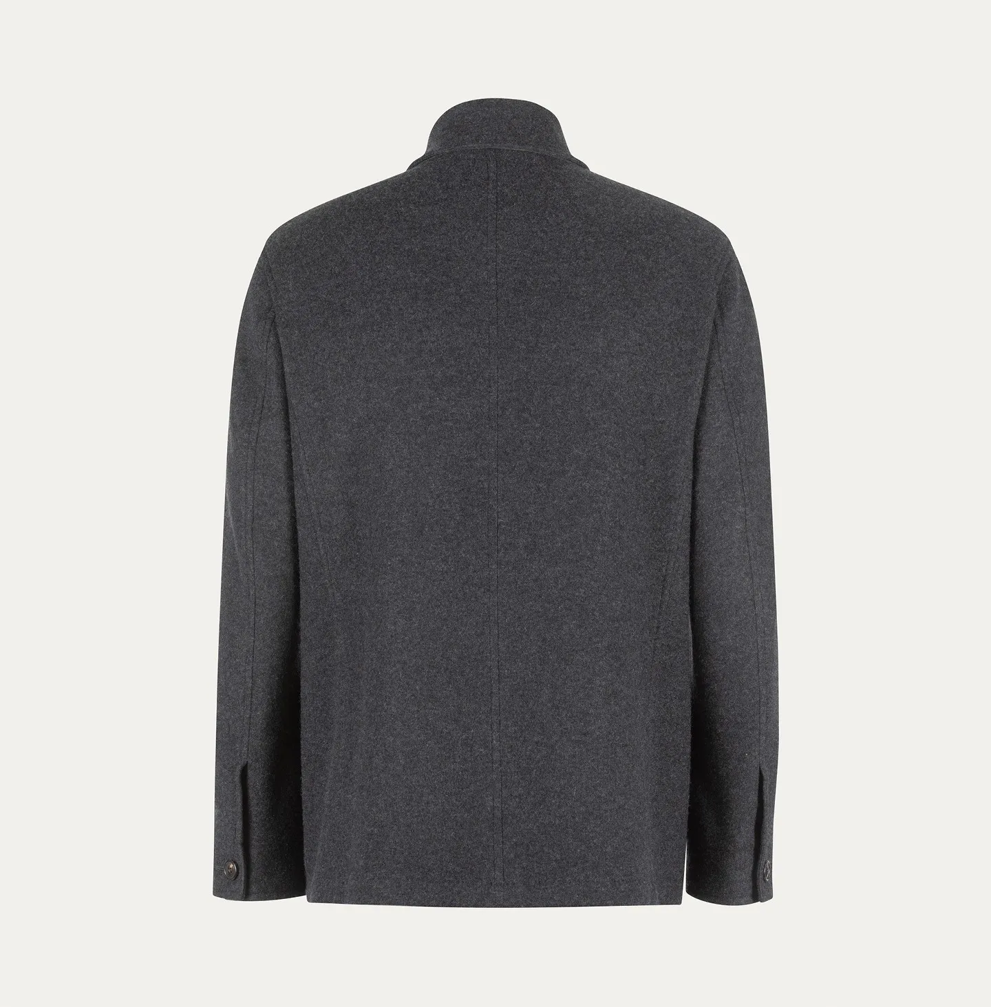 Outerwear stile giacca con chiusura a quattro bottoni che nasconde una zip interna, pensato per unire eleganza e funzionalità. Il design si distingue per il collo a camicia, sobrio e raffinato, che aggiunge versatilità all’insieme. Sul fronte sono presenti due tasche applicate inferiori e una tasca al petto, mentre i polsini con bottone completano la costruzione sartoriale del modello. La linea è pulita e regolare, con un retro essenziale che valorizza la leggerezza e il comfort della struttura.