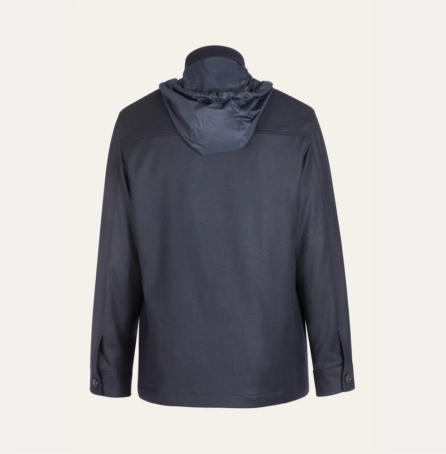 Questo outerwear dallo stile camicia unisce linee essenziali e dettagli funzionali, pensato per accompagnare con eleganza la quotidianità. Caratterizzato da un cappuccio a scomparsa in nylon custodito all’interno del collo, presenta due tasche applicate sul petto con patta e chiusura a bottone. I polsini sono regolabili con bottoni, mentre la chiusura frontale è nascosta da una pattina che cela la zip a doppio cursore e i bottoni. All’interno, la fodera trapuntata offre calore e comfort senza rinunciare alla leggerezza.