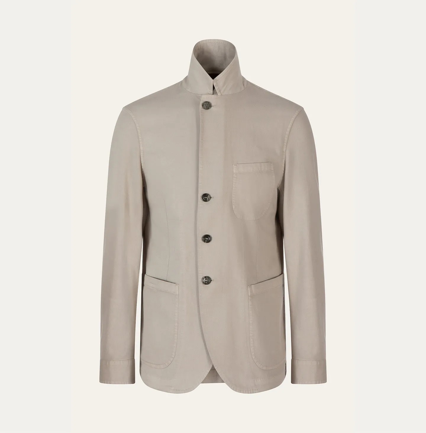 Outerwear d’ispirazione sartoriale, reinterpretato in chiave contemporanea. Questo modello unisce la struttura di una giacca alla funzionalità di un capospalla leggero, con linea pulita e vestibilità regolare. Il collo alto con chiusura a bottoni, abbinato alla zip interna nascosta, crea un elegante gioco di sovrapposizioni e garantisce praticità e protezione.