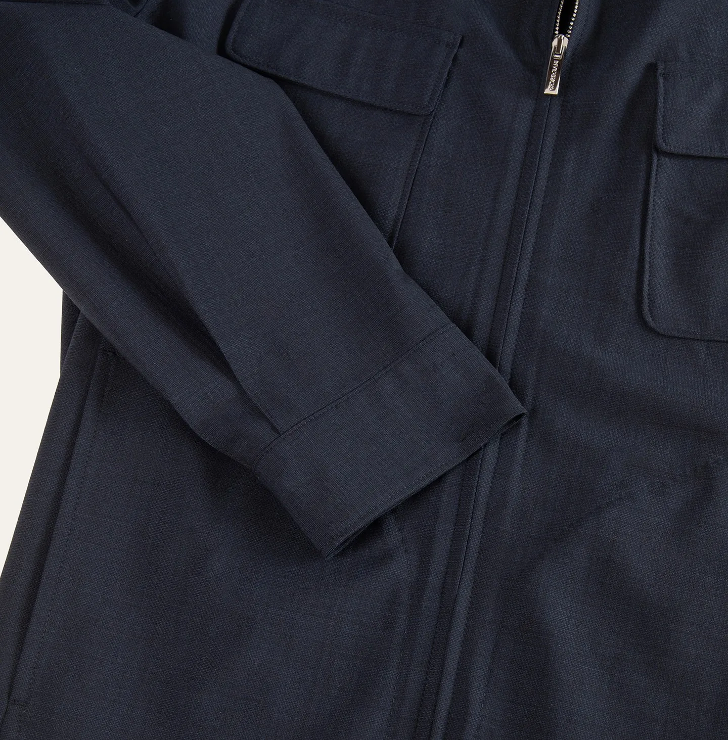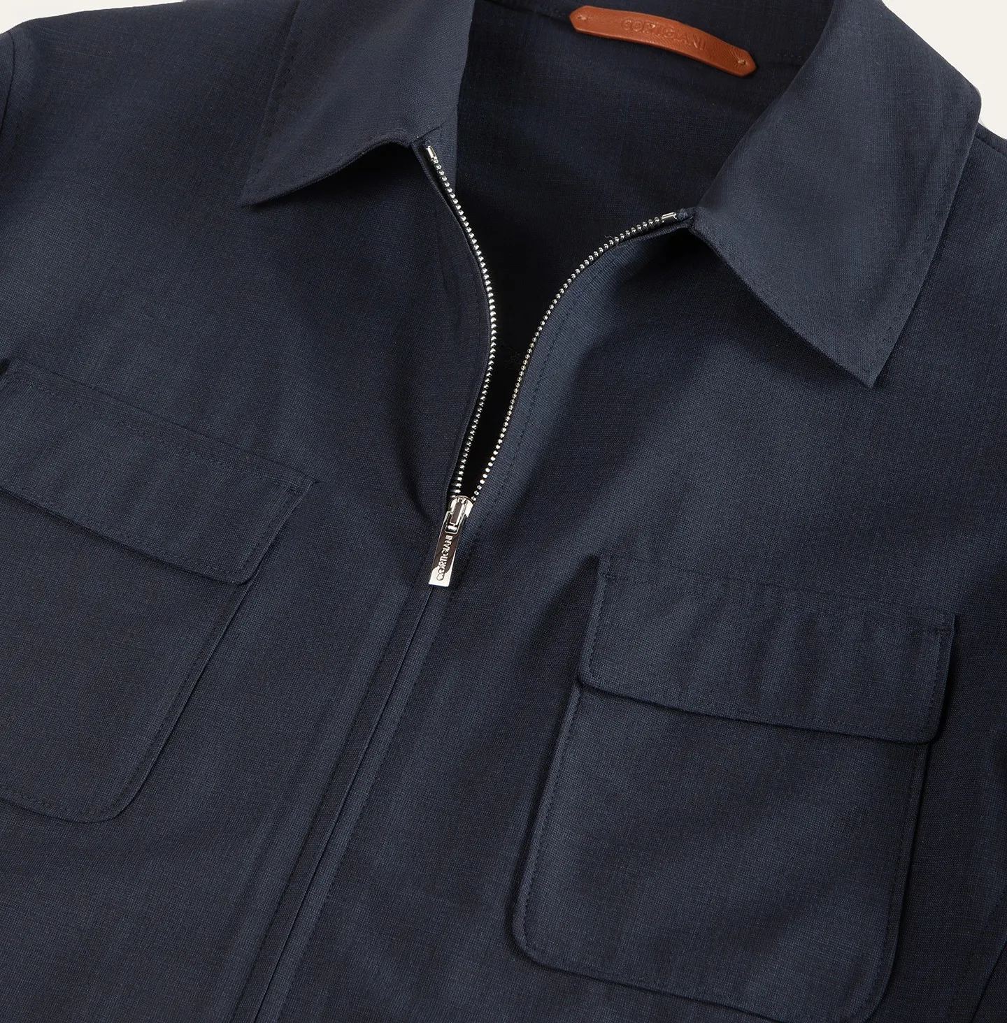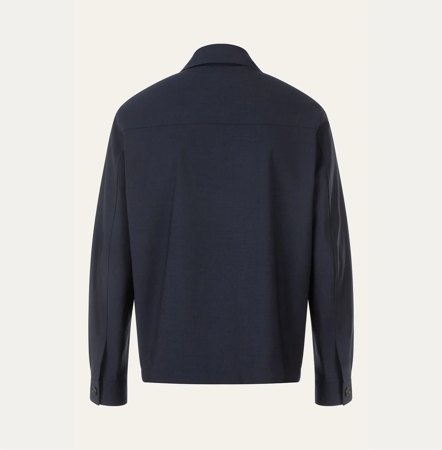 Giubbino sfoderato d’ispirazione camicia, pensato per un’eleganza rilassata e contemporanea. Il modello presenta una chiusura frontale con zip a doppio cursore, abbinata a un colletto classico che definisce la linea con pulizia e carattere. Sul davanti spiccano due tasche applicate sul petto con pattina, affiancate da tasche laterali inserite, per un equilibrio perfetto tra funzionalità e stile. Il design è completato da polsi con bottone e da una costruzione essenziale, ideale da indossare come capo leggero nelle mezze stagioni.