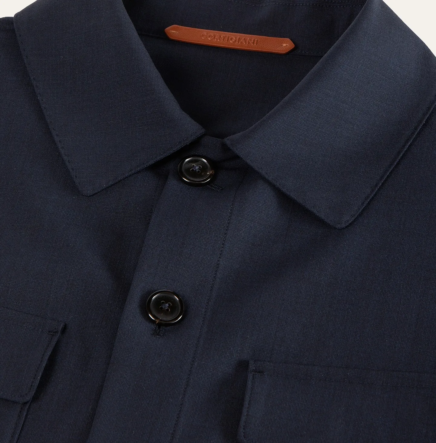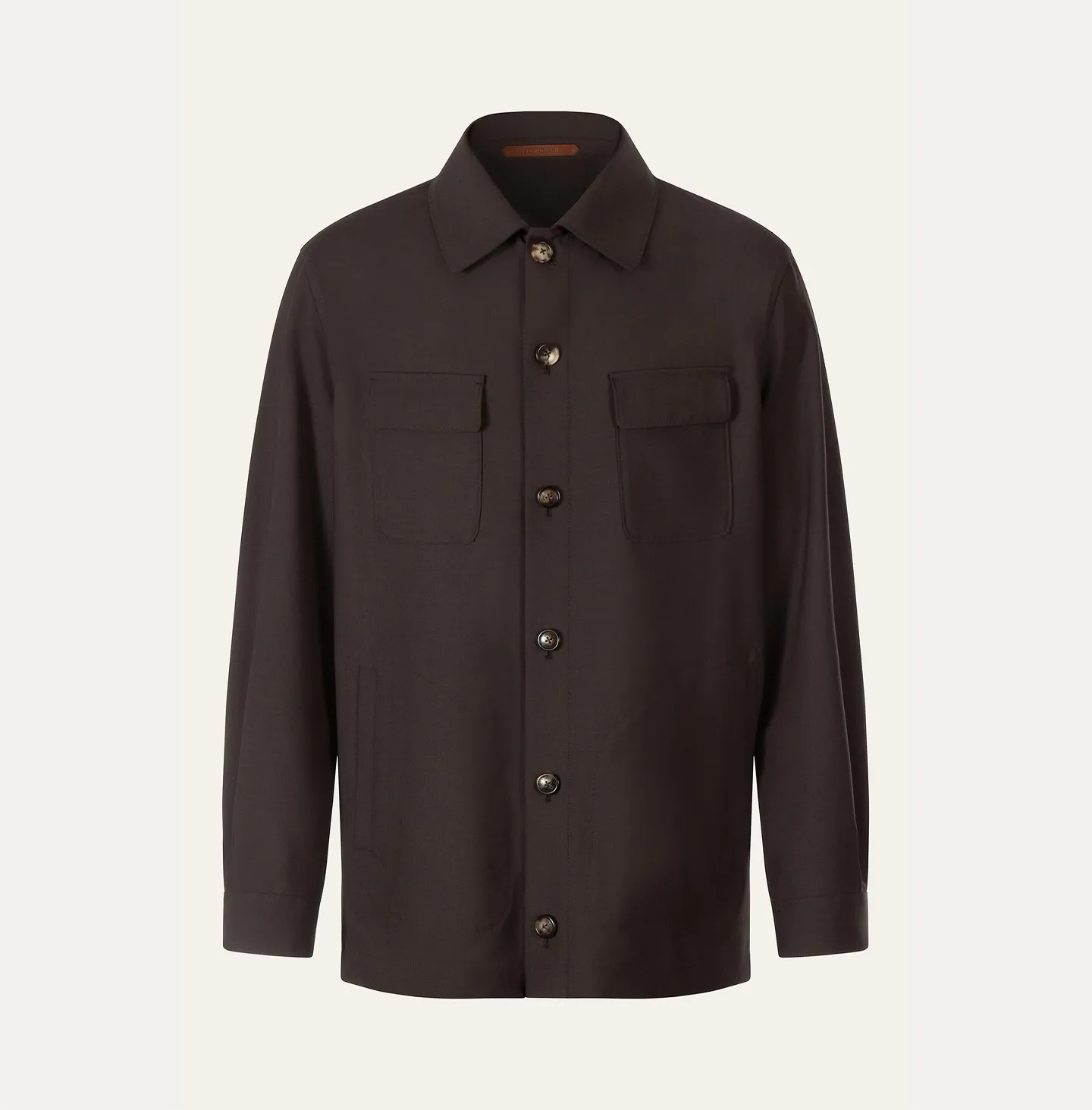 Giacca sfoderata stile overshirt, caratterizzata da una silhouette pulita e versatile che unisce la leggerezza di una camicia alla struttura di un capo outerwear. Il design presenta un classico collo a camicia, chiusura frontale con bottoni e due tasche applicate sul petto con patta, per un tocco utilitario raffinato. Discrete tasche laterali sono integrate nella costruzione, mentre il fondo dritto e la vestibilità regolare assicurano comfort e facilità di sovrapposizione durante tutta la stagione.