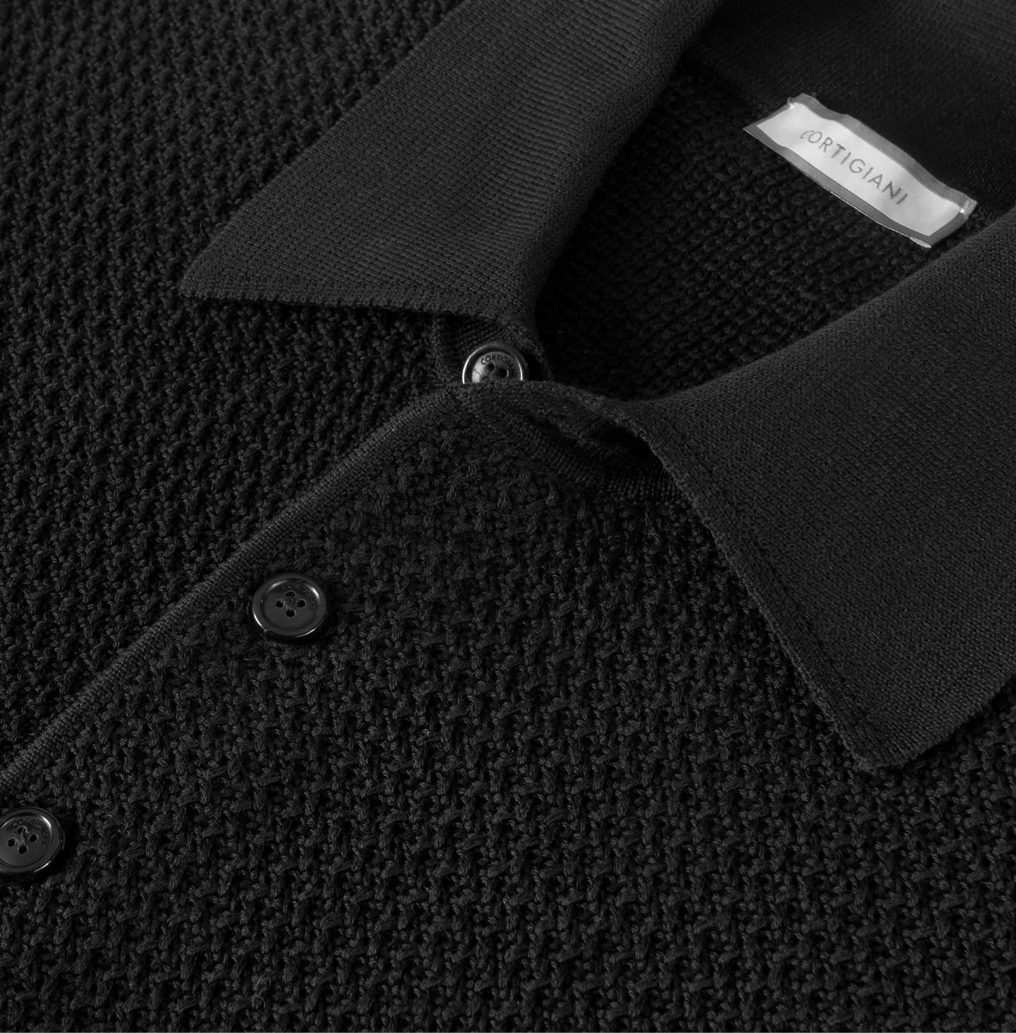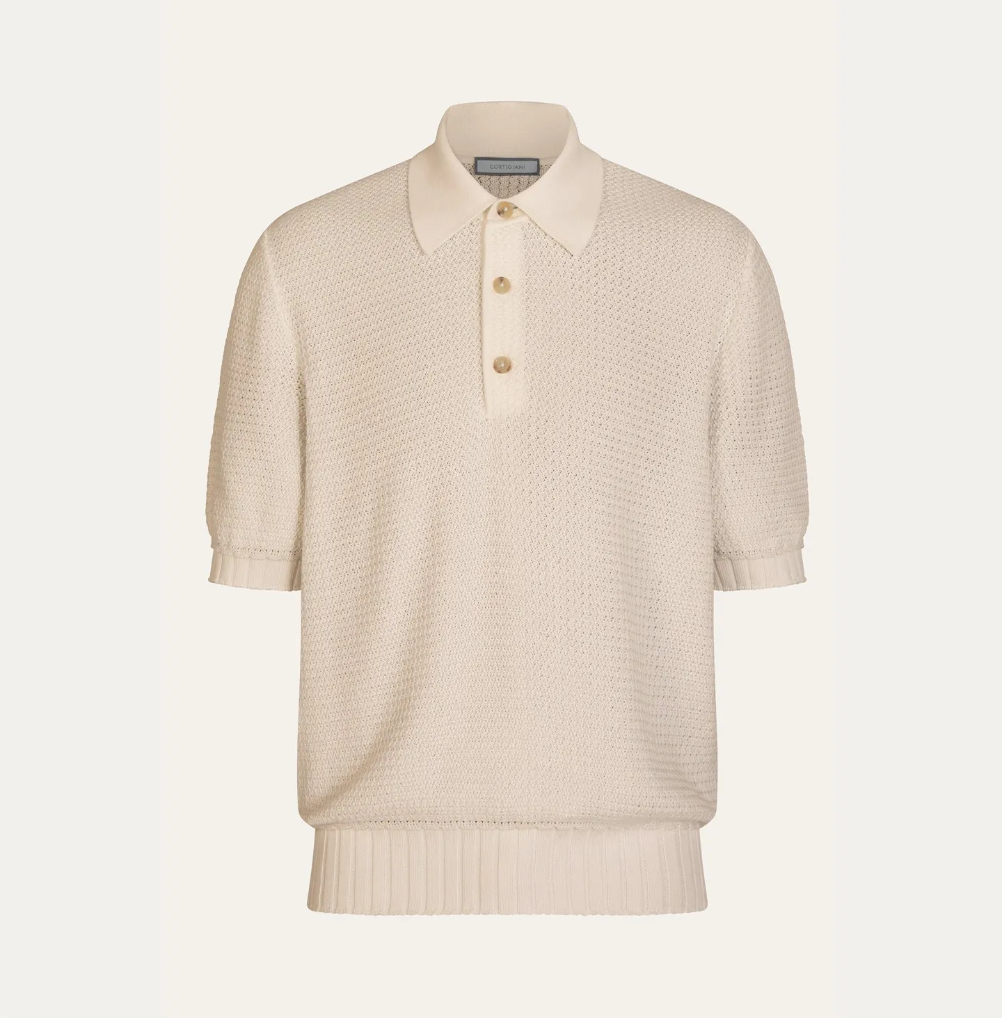 Polo a maniche corte dal carattere raffinato e contemporaneo, realizzata con una lavorazione tridimensionale che conferisce profondità e ricchezza alla superficie del capo. Il design unisce eleganza e comfort attraverso una costruzione curata nei dettagli: il collo è rifinito con una precisa calatura che garantisce una vestibilità naturale e una linea pulita sul collo, mentre l’abbottonatura frontale con tre bottoni mantiene un’estetica classica e versatile. Le maniche e il fondo capo sono completati da una costa ampia e strutturata, elemento che dona stabilità alla forma e crea un contrasto visivo equilibrato con la texture del corpo della maglia.