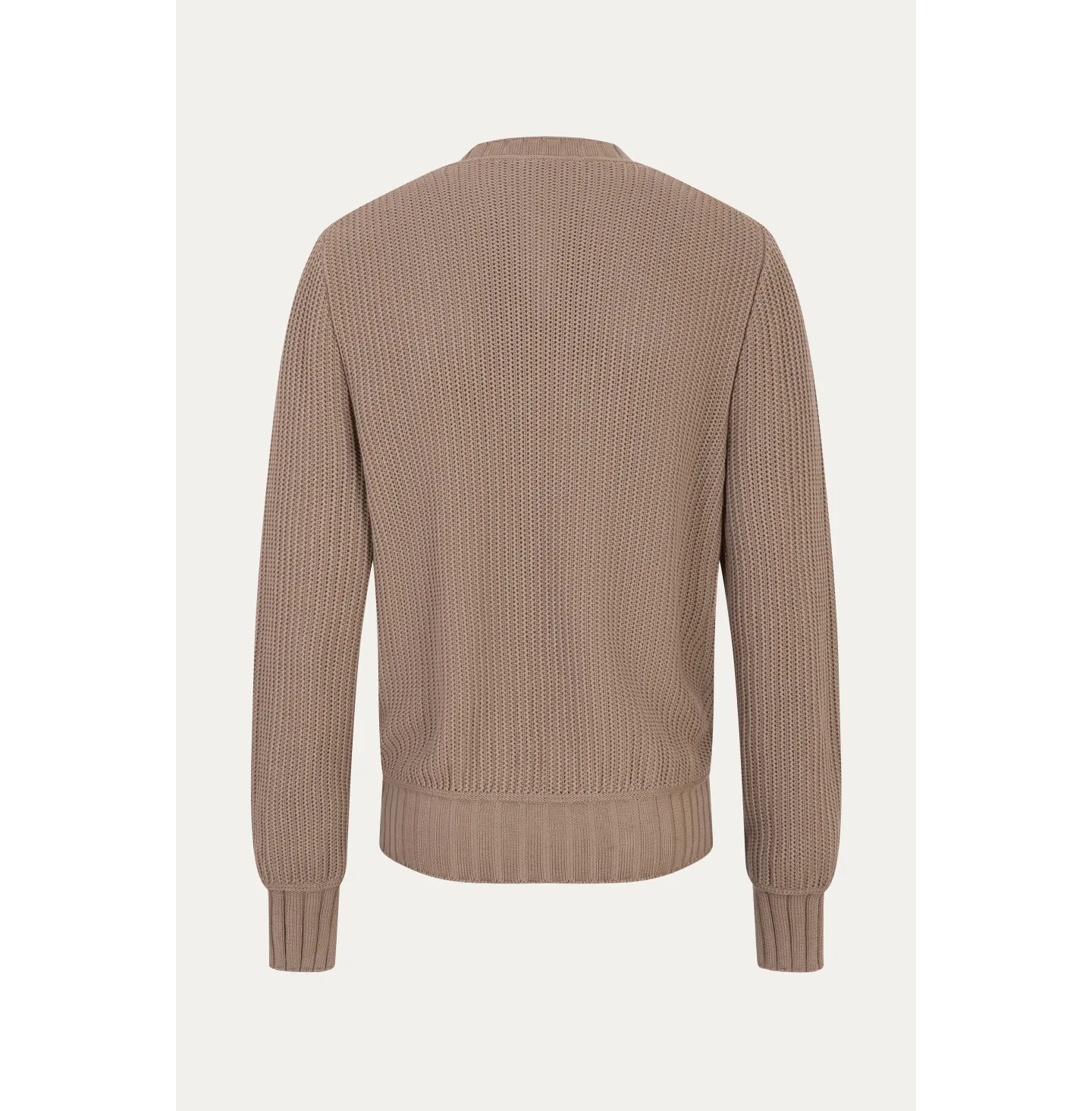 Realizzata in puro cotone, questa maglia unisce comfort e traspirabilità a una mano morbida e corposa. La lavorazione a costa inglese a 7 fili esalta la texture tridimensionale del filato, conferendo profondità e carattere al capo. Perfetta per le mezze stagioni, offre un equilibrio armonioso tra stile e funzionalità.
