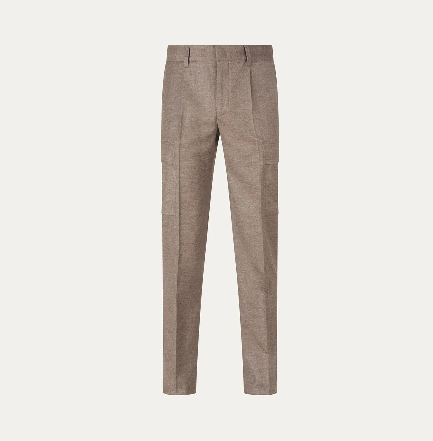 Il pantalone Leisure Fit con tasche cargo in cashmere lana comfort è un capo che unisce funzionalità e raffinatezza. La linea morbida, con vestibilità regolare e taglio contemporaneo, è arricchita da tasche cargo laterali che donano un carattere dinamico e versatile. I dettagli sartoriali come la piega centrale stirata, le tasche posteriori a filetto con bottone e il cinturone elastico sul retro valorizzano lo stile pratico senza rinunciare all’eleganza. Perfetto per il tempo libero, interpreta in chiave sofisticata l’ispirazione utility, adattandosi con naturalezza a look rilassati ma curati.