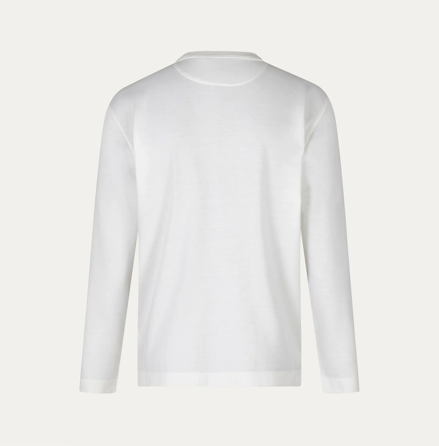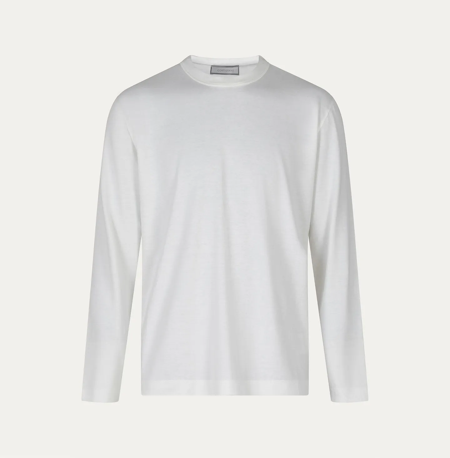 Questa t-shirt a manica lunga in seta e cashmere esprime un’eleganza essenziale e raffinata, pensata per chi ricerca comfort e leggerezza senza rinunciare allo stile. La linea pulita e regolare, con scollo rotondo e taglio minimale, la rende un capo versatile e senza tempo, perfetto da indossare da sola o come strato sotto giacche e maglie. La sua semplicità sofisticata la trasforma in un elemento indispensabile del guardaroba quotidiano.