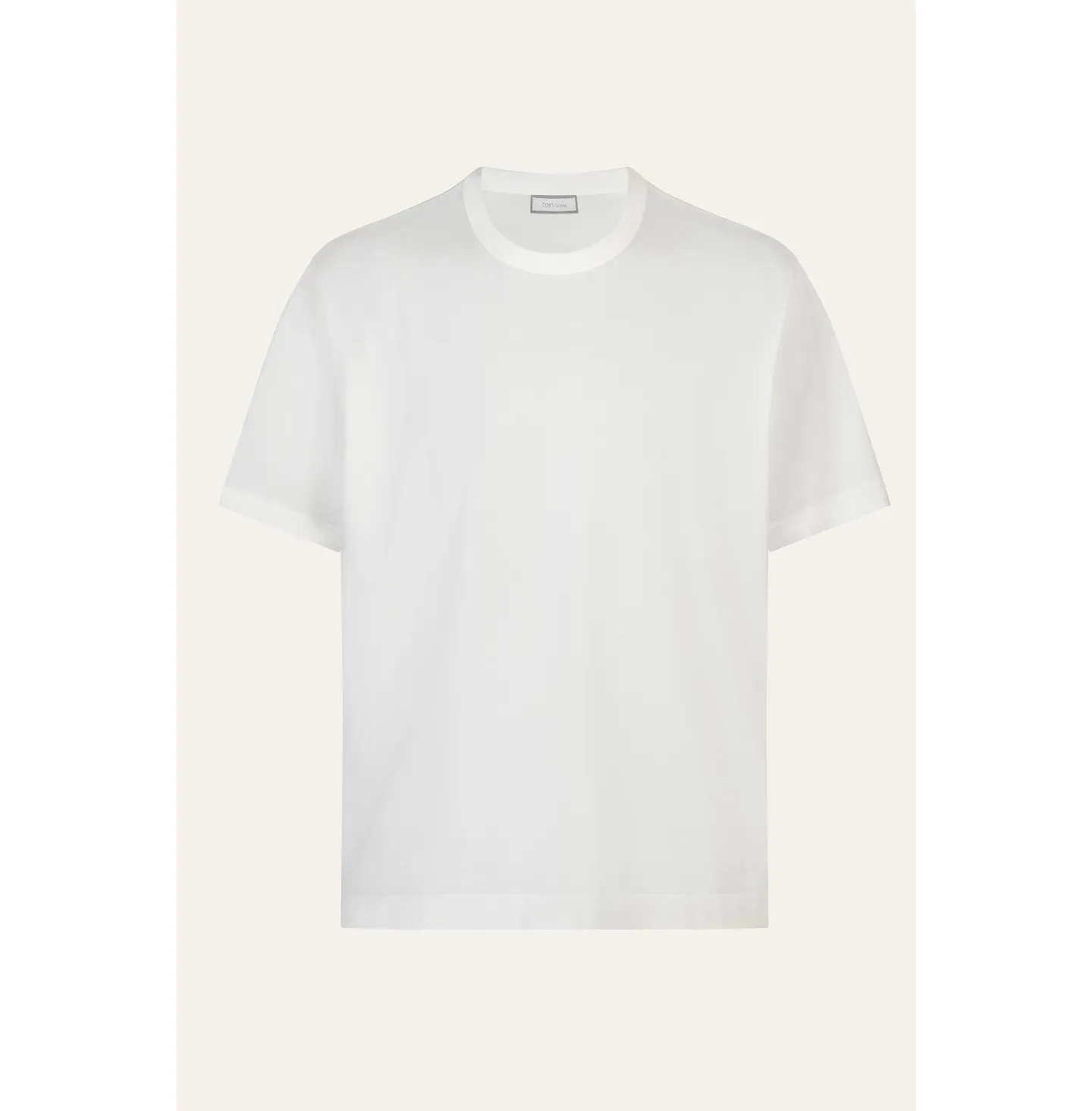 T-shirt girocollo in cotone pima lavato, caratterizzata da un design essenziale e una vestibilità regolare. Il modello presenta spacchetti laterali sul fondo per una maggiore libertà di movimento e comfort. Sul retro, la lunetta del collo è arricchita dal logo Cortigiani stampato tono su tono, dettaglio discreto ma distintivo.