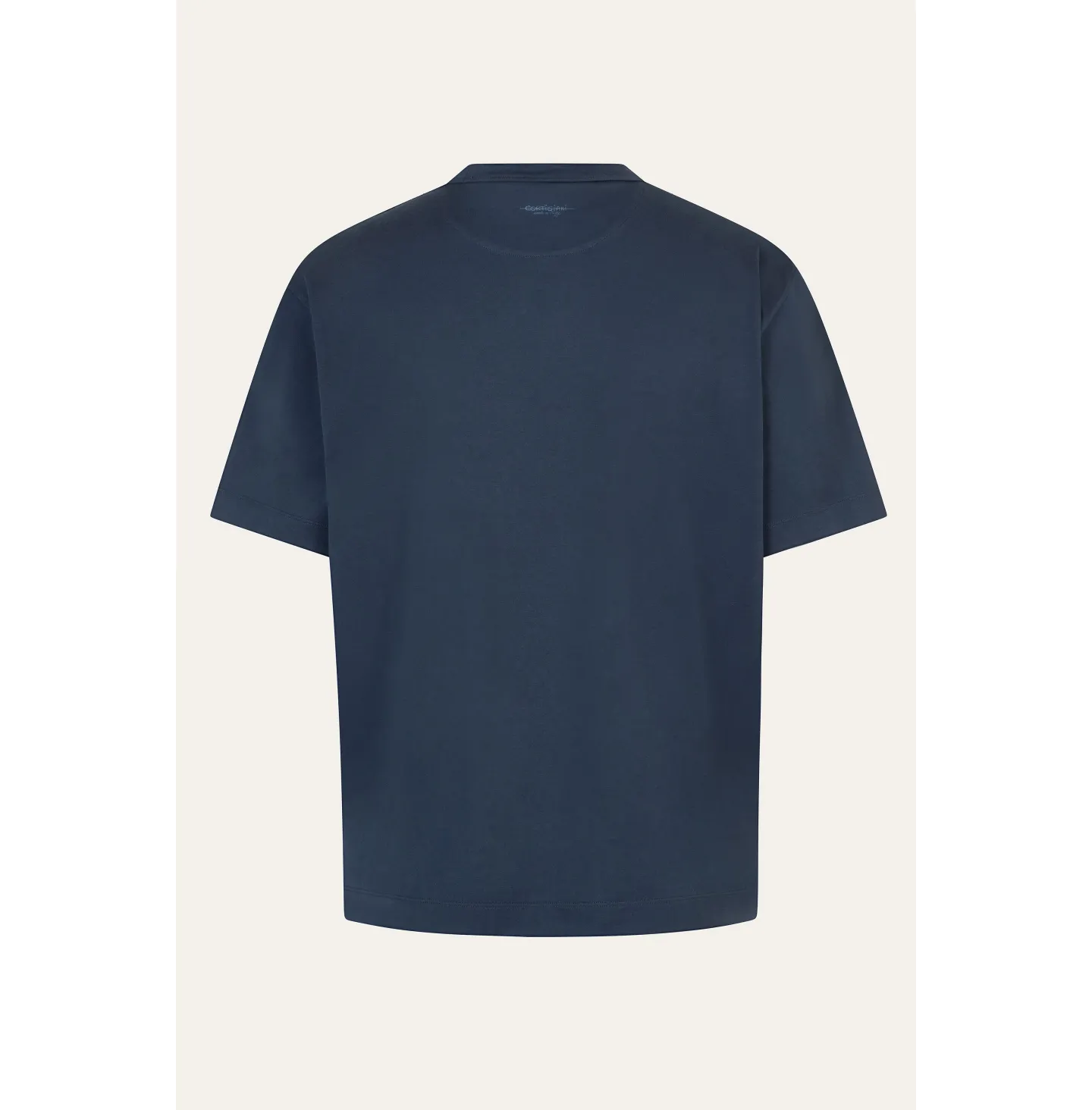 T-shirt girocollo in cotone pima lavato, caratterizzata da un design essenziale e una vestibilità regolare. Il modello presenta spacchetti laterali sul fondo per una maggiore libertà di movimento e comfort. Sul retro, la lunetta del collo è arricchita dal logo Cortigiani stampato tono su tono, dettaglio discreto ma distintivo.